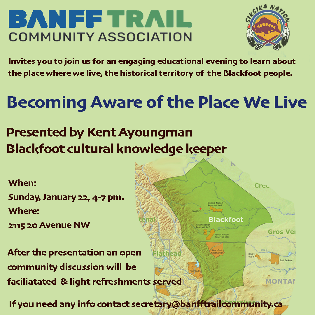 Blackfoot Cultural Engagement Night Sunday, January 22, 2023 4:00 p.m. 7:00 p.m. Banff Trail Community Centre 2115 20 Avenue Northwest Calgary, AB, T2M 1J1 Canada (map) Google Calendar ICS